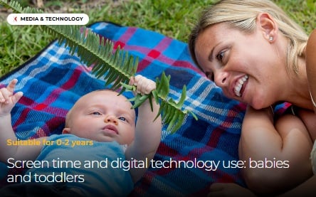 Babies and toddlers learn best when they play, talk and enjoy everyday moments with the people who care about them. Screens can be part of a healthy, balanced lifestyle – especially when you watch or use them together with your child and talk about what you see and hear, enjoying close time together. What matters most is that screen time doesn’t replace real-life play, conversation, movement and connection.